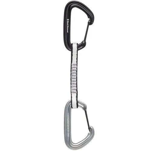 BD Black Diamond LiteWire Quickdraw è un rinvio da arrampicata formato da due moschettoni con la leva a filo e una fettuccia lunga 12 cm e spessa 12 mm.