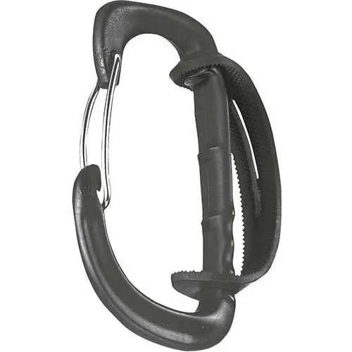 Il moschettone Hub della CAMP si adatta alla maggior parte degli imbraghi in commercio ed è abbastanza spazioso da portare fino a sei viti per il ghiaccio; inoltre è ottimo anche per trasportare piccozze.