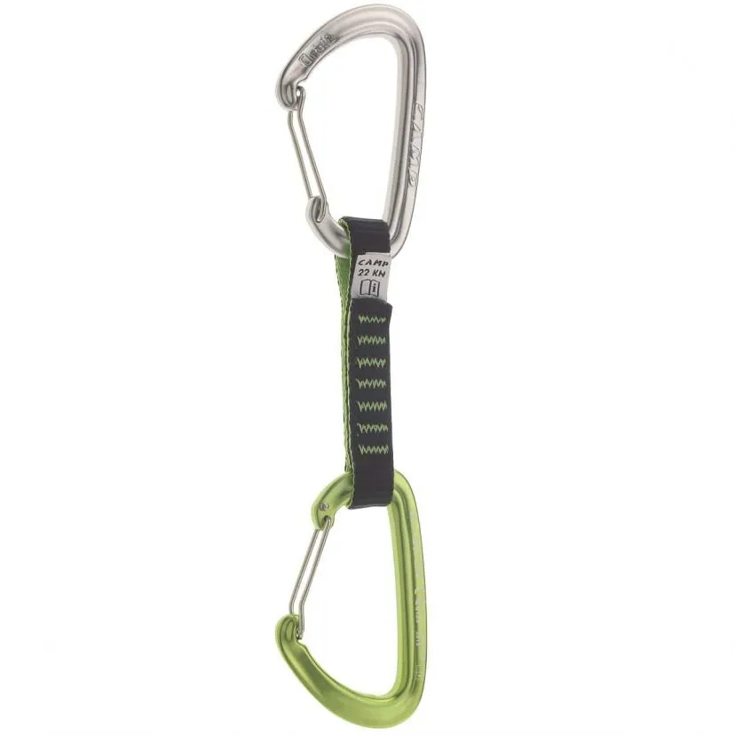 Entrambi i moschettosi sono degli Orbit Wire con leva a filo di colori diversi e comodissimi nella rinviata. La fettuccia in Nylon da 16 mm di 11 cm di lunghezza ti assicura un ottimo rapporto tra resistenza e leggerezza.