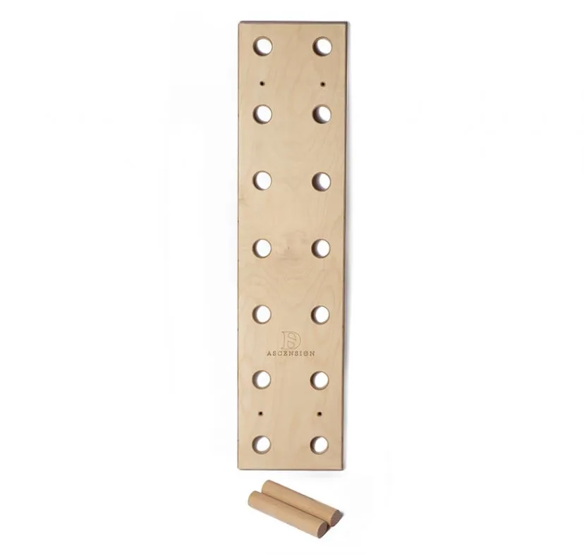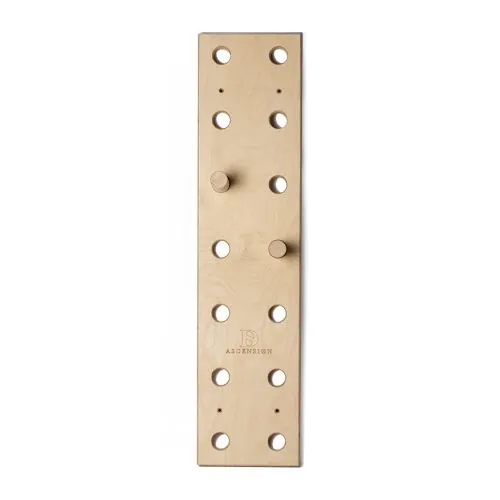 Didak’s Ascension Board peg board è un pannello forato in legno ottimo per migliorare il tuo allenamento a casa, in garage o in palestra. Non richiede molto spazio e puoi piazzarlo dove vuoi. E’ un sistema di allenamento semplice ma che permette di essere dinamico e di aumentare la forza dei muscoli delle braccia, della schiena e la cosiddetta “core strength”. Si usa spostando i due pioli (forniti) nei quattordici fori presenti lungo la metrata di pannello. Fornito di quattro viti per il montaggio.