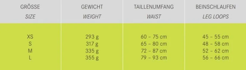 Cintura e cosciali sono creati con la tecnologia 3D-Mesh, che garantisce grande morbidezza e comfort. La struttura è studiata in modo da garantirti un’ottima distribuzione dei pesi, leggerezza e ingombro minimo. La costruzione a tre fasce, inoltre, è quanto di migliore possa esserci per la distribuzione equa del peso e delle forze coinvolte negli eventuali strappi dovuti ad un volo.