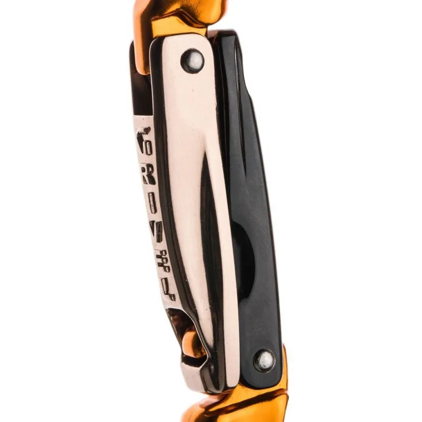Grivel K10G Clepsydra Twin Gate è costituito da una leva a filo che isola la parte dedicata alla sicura o alla discesa, anche da aperto, e garantisce sempre la corretta posizione del moschettone sia con la corda che senza.