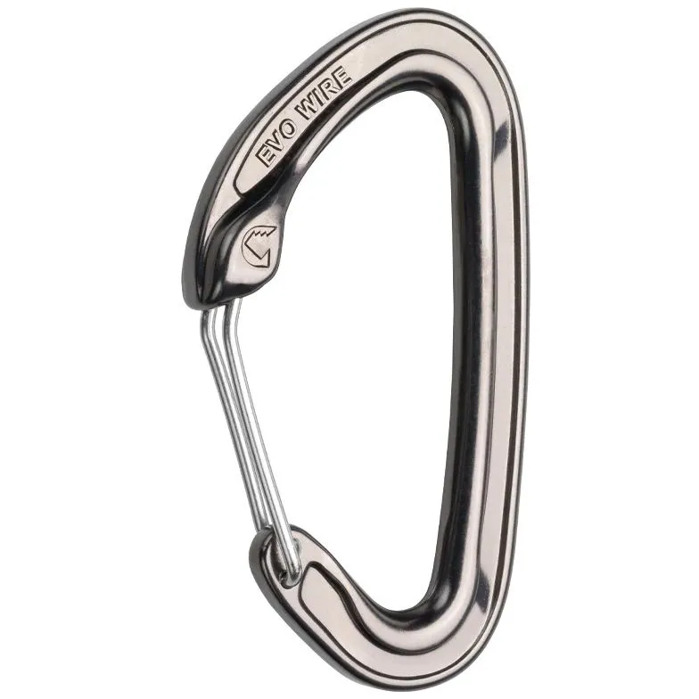 Piccolo e compatto, ha il corpo dell’ormai conosciuto moschettone Plume di Grivel mentre presenta la tecnologia brevettata Evo Wire sul naso per impedire che il moschettone si impigli mentre si sta togliendo la corda.