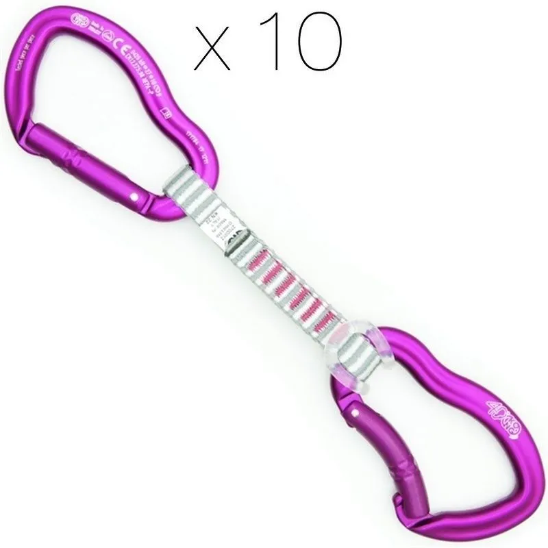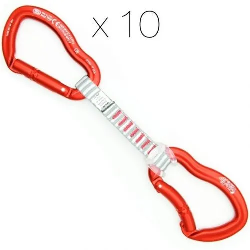Il rinvio è composto da una fettuccia in dyneema lunga 12 cm e larga 13 mm e due fighissimi moschettoni Ergo a leva piena.