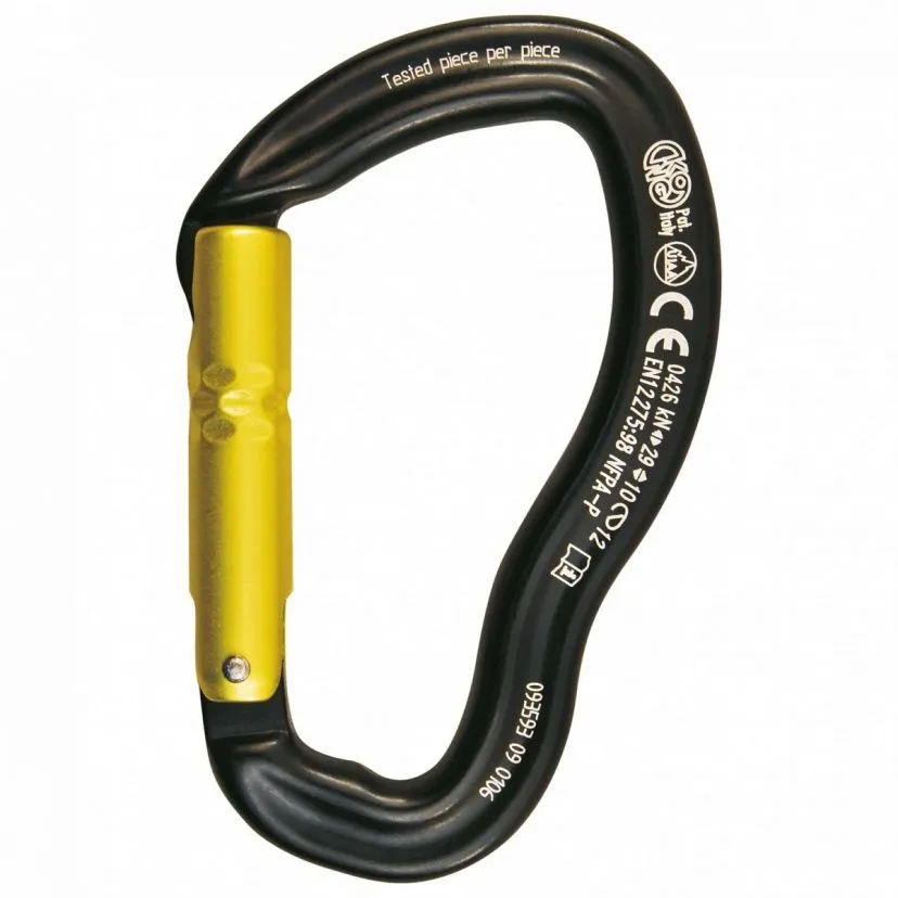 Il moschettone si presta bene ad essere utilizzato sui rinvii, caratterizzato da un carico di rottura molto elevato e da una particolare forma asimmetrica che lo rende estremamente maneggevole anche da persone con mani piccole, tipo donne e bambini.