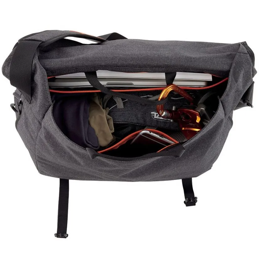 La borsa presenta due scomparti distinti studiati per trasportare la tua attrezzatura d’arrampicata e le cose del lavoro, perfino il portatile troverà posto in un’apposita tasca imbottita e rinforzata.