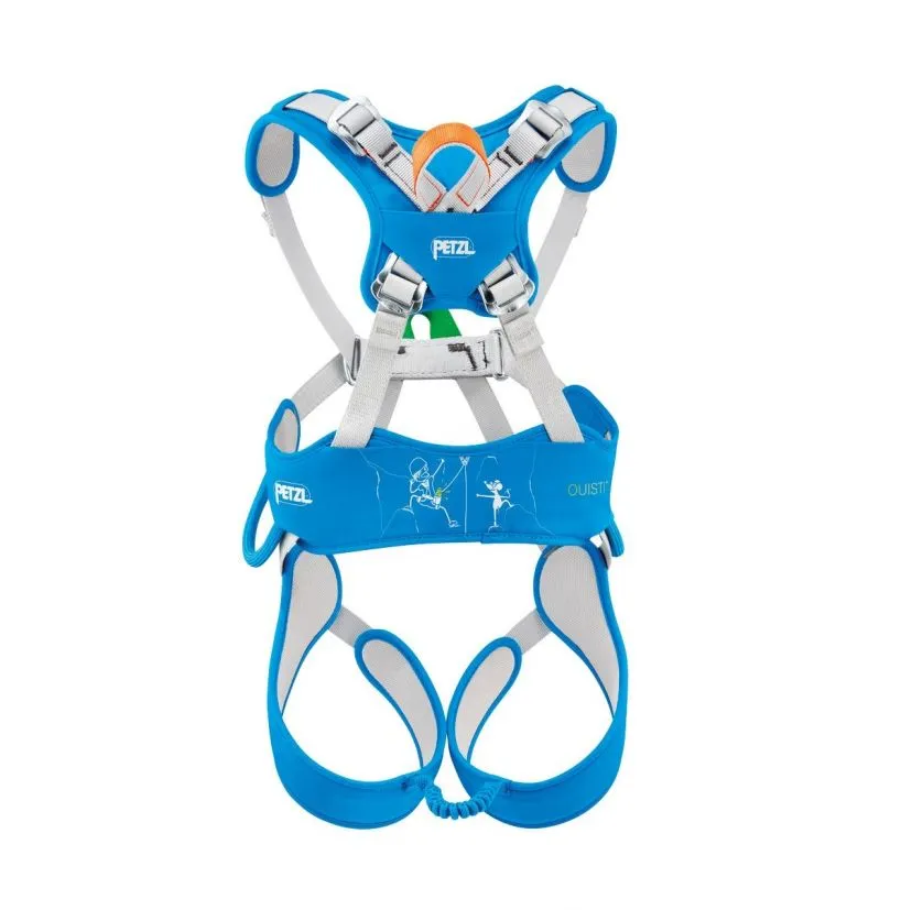 Ouistiti è confortevole sia a terra che in sospensione, grazie alla nuova struttura imbottita in schiuma a cellule chiuse su cosciali, cintura di posizionamento e bretelle. Concepito per offrire la massima sicurezza, Petzl colloca le due fibbie DoubleBack sulla schiena, in maniera tale da non permettere al bambino di aprirle da solo.