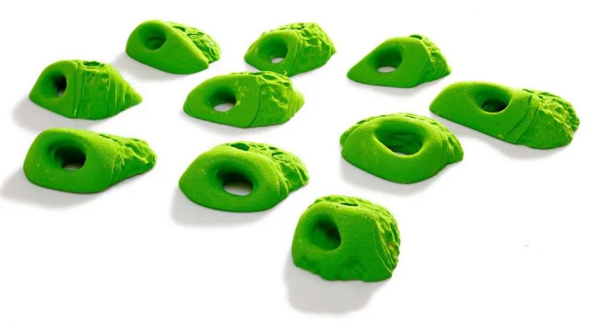 Il set Smog contiene dieci prese bidita e tridita piccole da arrampicata, realizzate in poliestere.