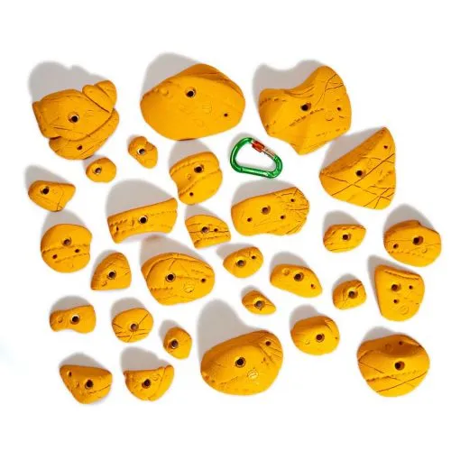 Il set Smog contiene ventinove prese miste da arrampicata, realizzate in poliestere.