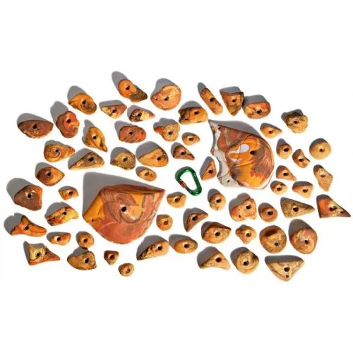 Il set completo Smog contiene 61 prese miste da arrampicata, realizzate in poliestere.