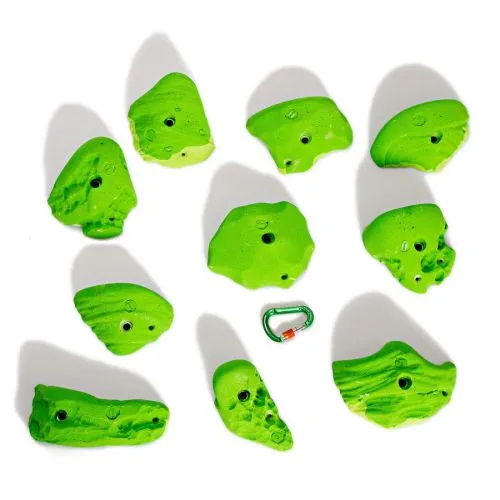 Il set Smog contiene dieci prese maniglie grandi da arrampicata, realizzate in poliestere.