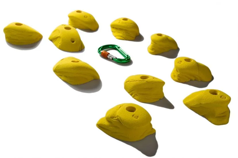Il set Smog contiene dieci prese maniglie ronchie piatte da arrampicata, realizzate in poliestere.
