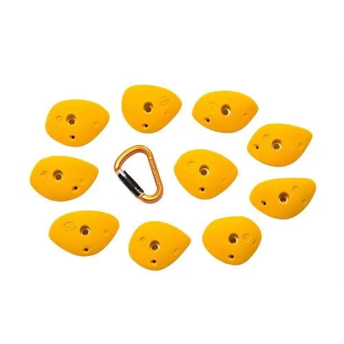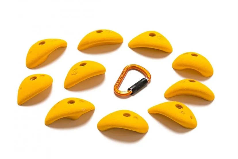 Prese da arrampicata Smog: questo set è composto da dieci maniglie che puoi usare come buone prese verticali o per tirare forte in strapiombi più o meno pronunciati. Sono fatte in poliestere.