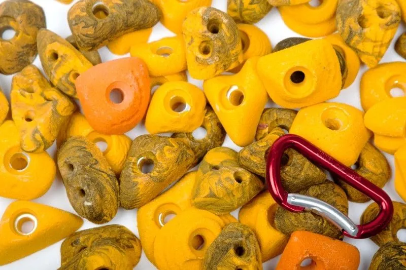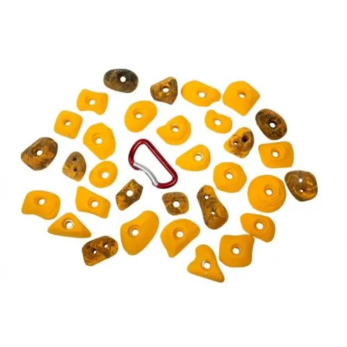 Il set Smog contiene trenta prese tacche piccole e piedini da arrampicata, realizzate in poliestere.