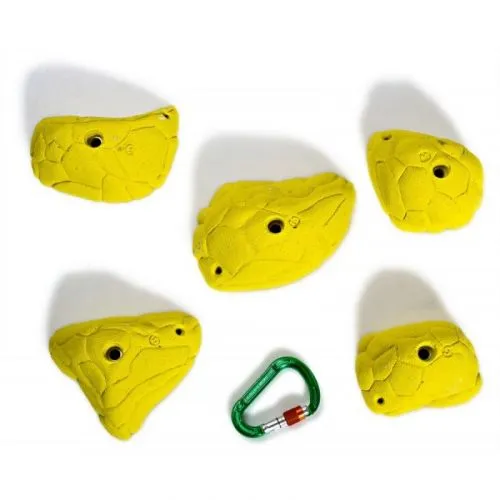 Il set Smog contiene cinque prese miste da arrampicata, realizzate in poliestere.