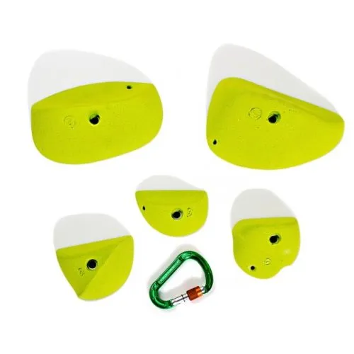 Il set Smog contiene cinque prese miste da arrampicata, realizzate in poliestere.