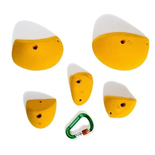Il set Smog contiene cinque prese miste da arrampicata, realizzate in poliestere.