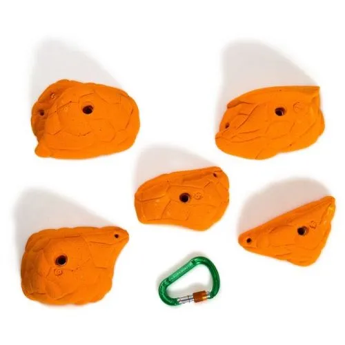 Il set Smog contiene cinque prese miste da arrampicata, realizzate in poliestere.