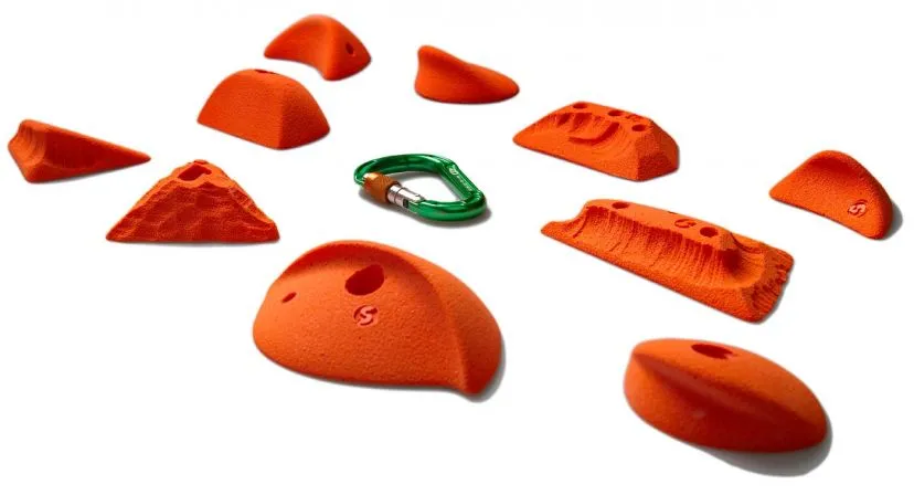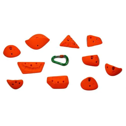 Il set Smog 04 contiene dieci prese tacche miste da arrampicata, realizzate in poliestere.