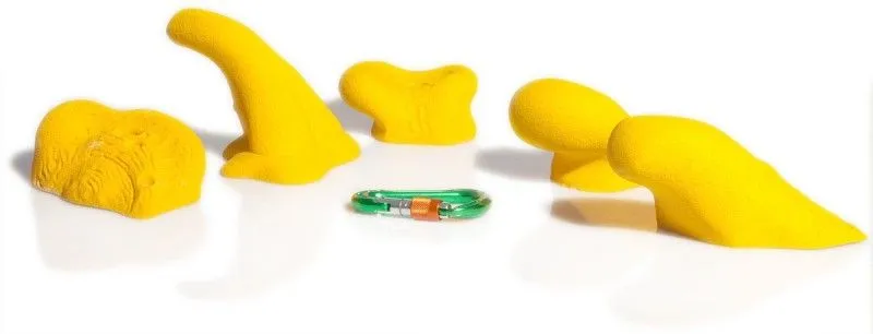 Il set Smog contiene cinque prese da tetto per l’arrampicata, realizzate in poliestere.